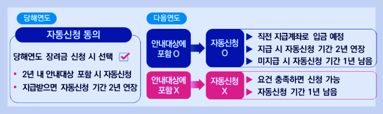 당해년도 자동신청동의와 다음연도까지 안내대상포함과 안내대상미포함동 자세하게 안내되어 있으니 참고하시기 바랍니다.