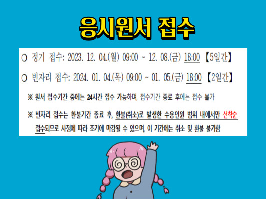 정기접수, 빈자리접수, 24시 접수가능하며 종류 후에는 접수할 수 없으니 참고하시기 바랍니다.