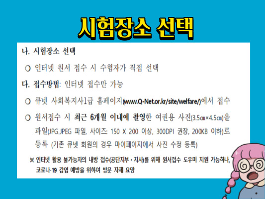 - 시험장소 선택은 각자 인터넷으로 원서 접수 시 수험자가 직접선택가능,