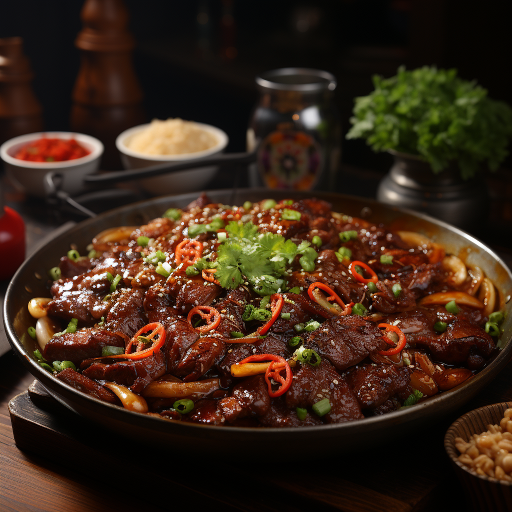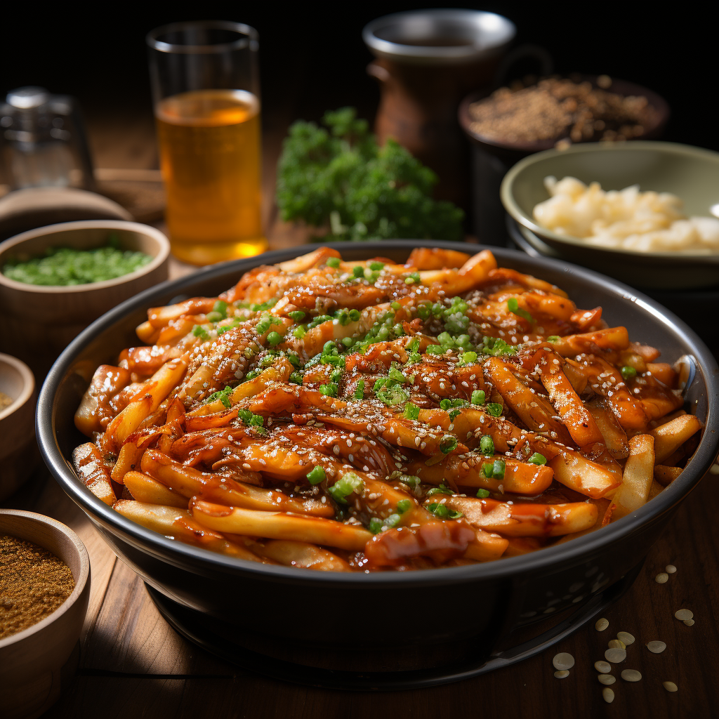 닭갈비는 매콤하고 달콤한 양념에 닭고기와 야채를 함께 볶아 입맛을 당기게 하는 안주로 사랑받고 있습니다.