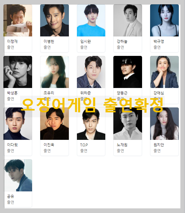 시즌2를 기다리면서 많은 팬들은 자신만의 배우들을 희망하기도 했을텐데요 오징어게임시즌2의 출연진이 공개되면서 이정재배우를 비롯하여 이병헌, 임시완, 강하늘, 박규영 등 모든 등장인물 배우들의 활약이 기대되고 있습니다.