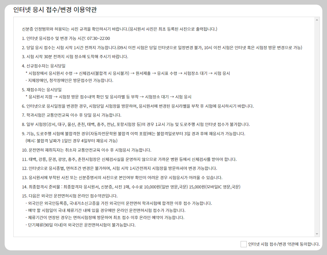 - 제1종, 2종 보통면허시험 응시자로 학과시험