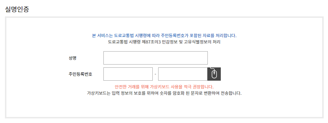해당싸이트에 접속하여 간단한 실인증철차를 통해 아래와 같은 화면을 확인 후 운전면허 시험접수를 시작하도록 합니다.