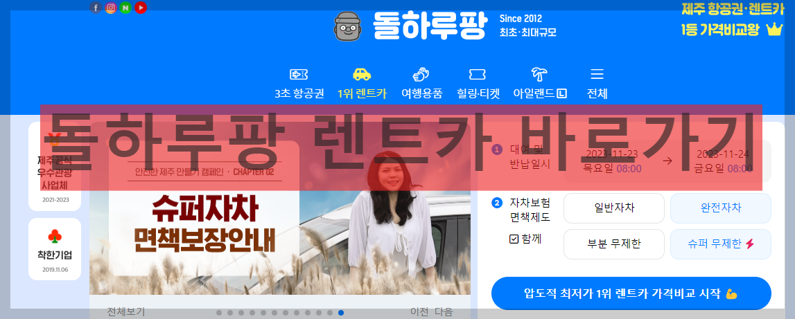 - 제주도 렌터카 가격비교 플랫폼 2021년부터 2023년까지 우수관광 사업체 지정