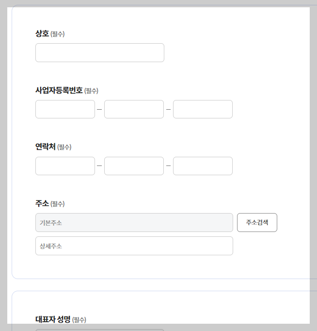 이제 상호부터 사업자 연락처등 해당사항을 빈캄을 빠짐없이 완료하고 구비서류만 확인하고 업로드하면 끝이랍니다.