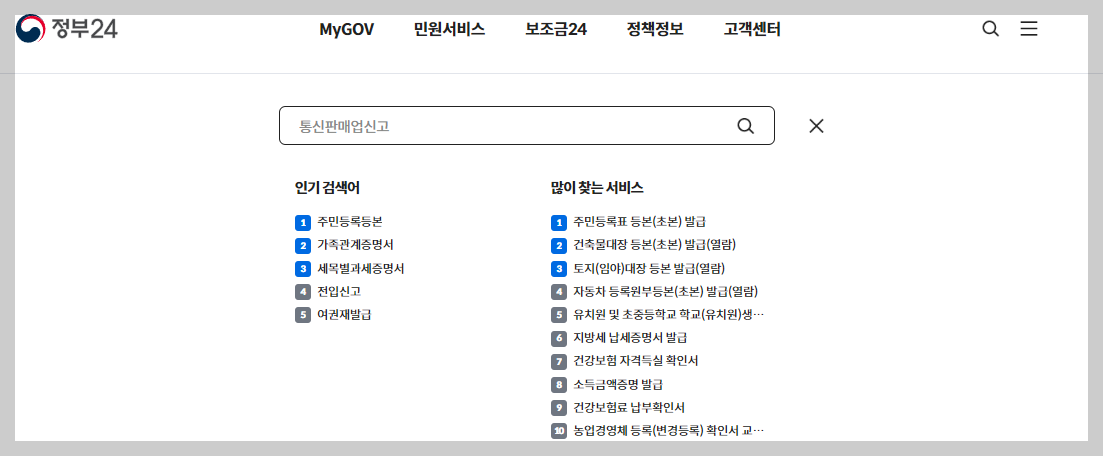 통신판매업을 신고하기위해서는 정부 24를 로그인해 주시기 바랍니다. 로그인하고 검색란에 통신판매업신고를 입력해 주시면 됩니다.